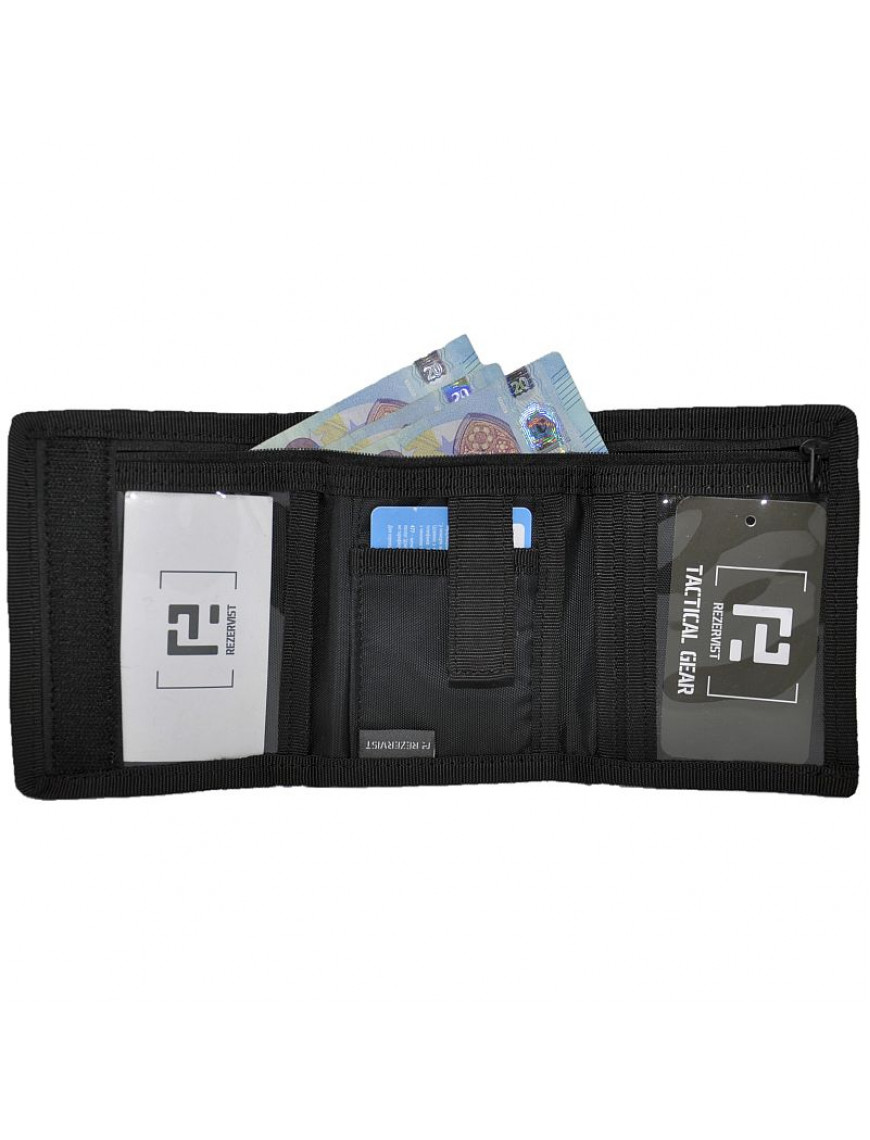 Вільно поміщається в кишеню джинсів або тактичних штанів. В ньому передбачені відділення під права, кредитки, різні дрібниці, відділення на металеві монети та відділення на паперові купюри що додатково закривається на блискавку. Гаманець застібається на якісну липучку Velkro. Модель виготовлена в стилі мілітарі.