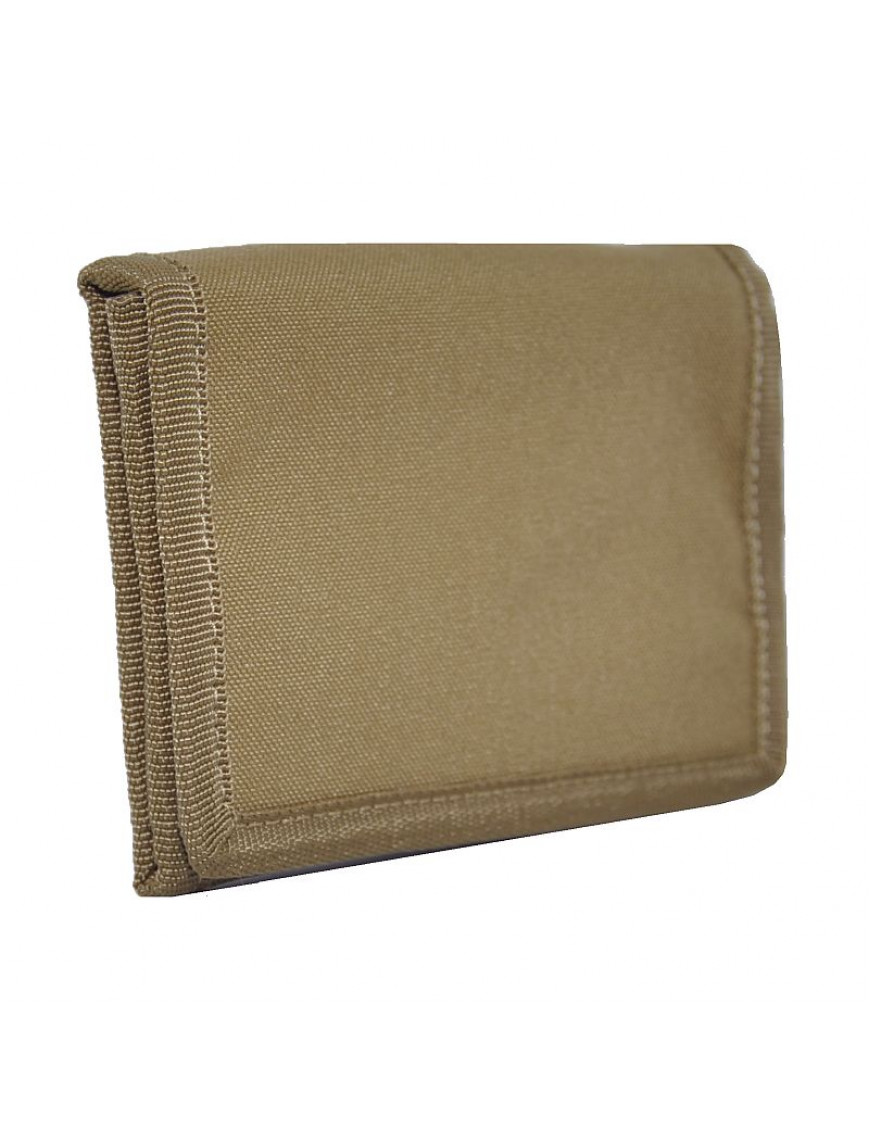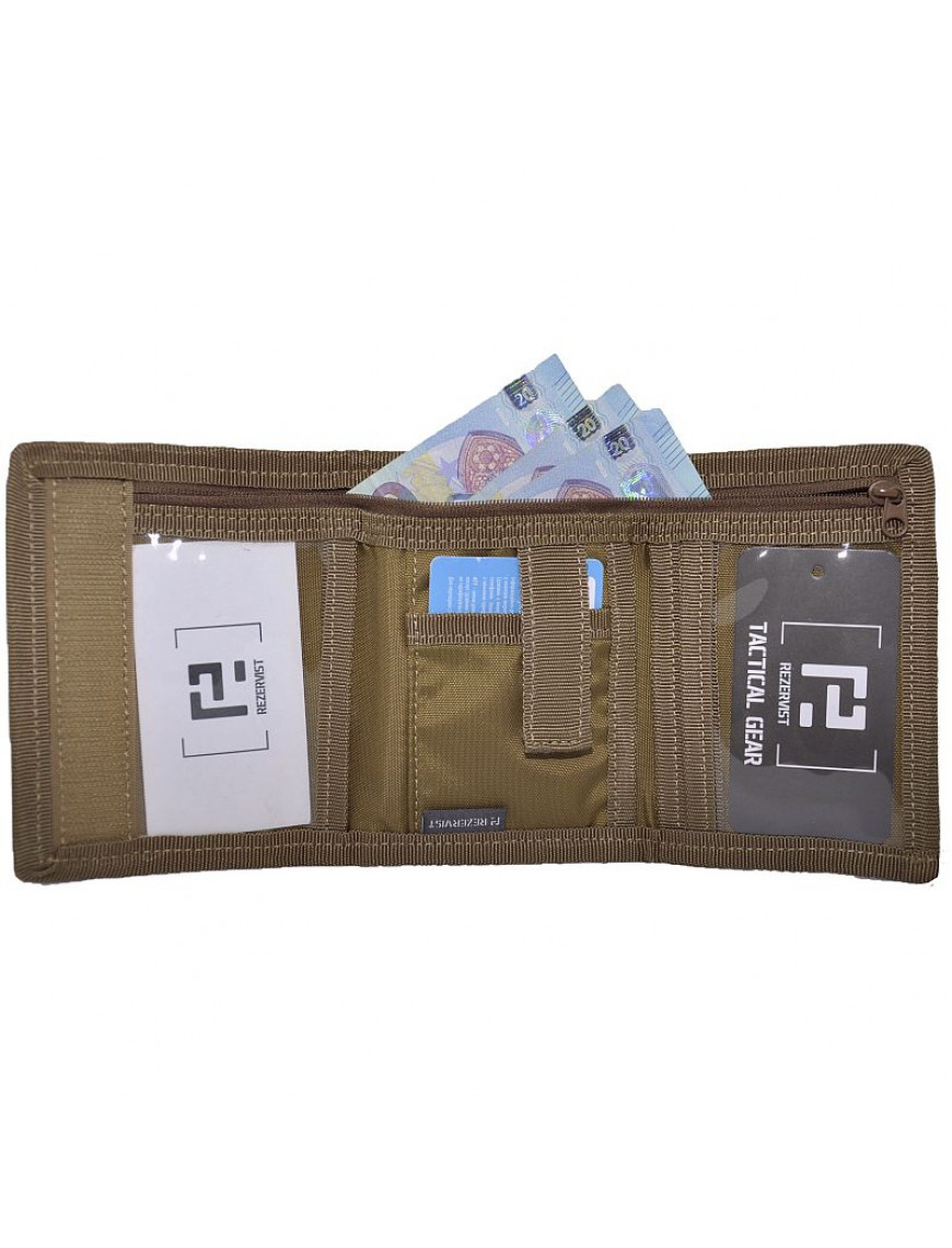 Вільно поміщається в кишеню джинсів або тактичних штанів. В ньому передбачені відділення під права, кредитки, різні дрібниці, відділення на металеві монети та відділення на паперові купюри що додатково закривається на блискавку. Гаманець застібається на якісну липучку Velkro. Модель виготовлена в стилі мілітарі.