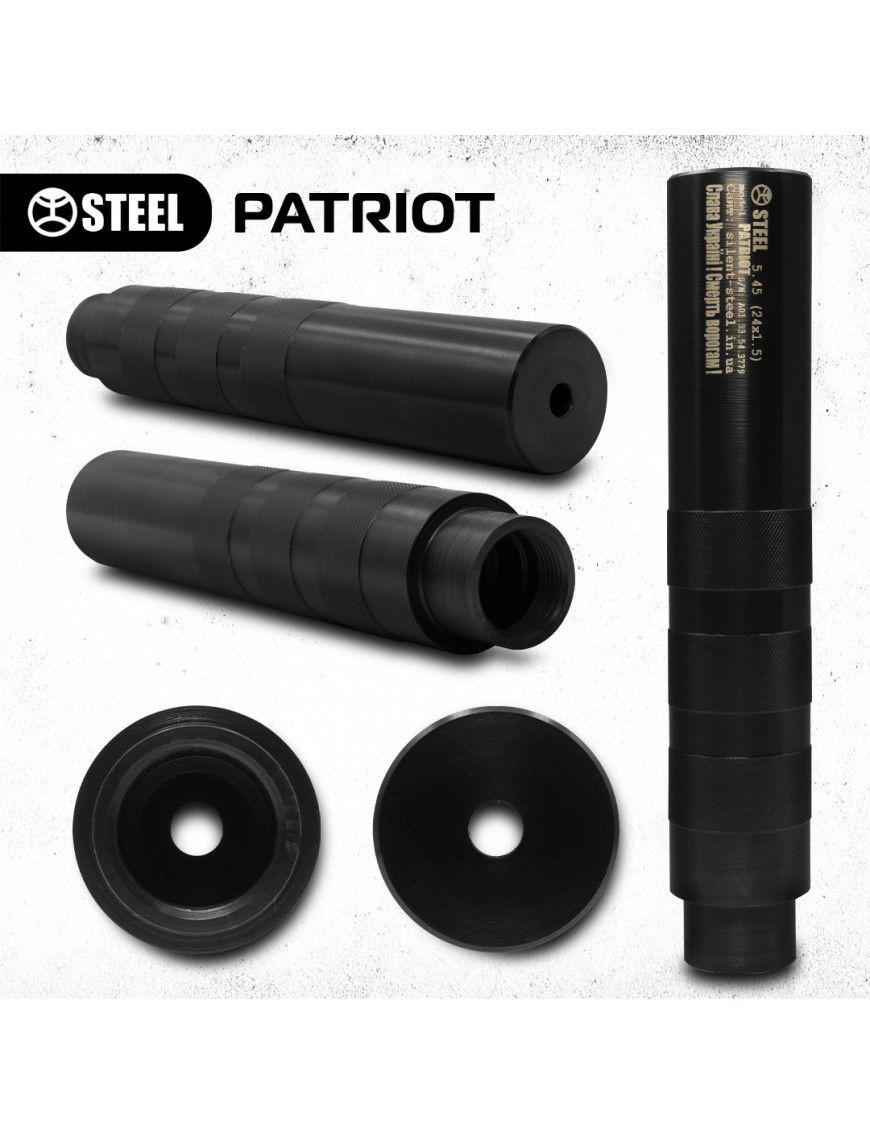 Коли кожен постріл має бути наче шепіт — тихий, але фатальний, на сцену виходить STEEL Patriot. Розроблений під калібр 5.45×39 мм, цей глушник довгої форми — вибір тих, хто знає: довжина важить.