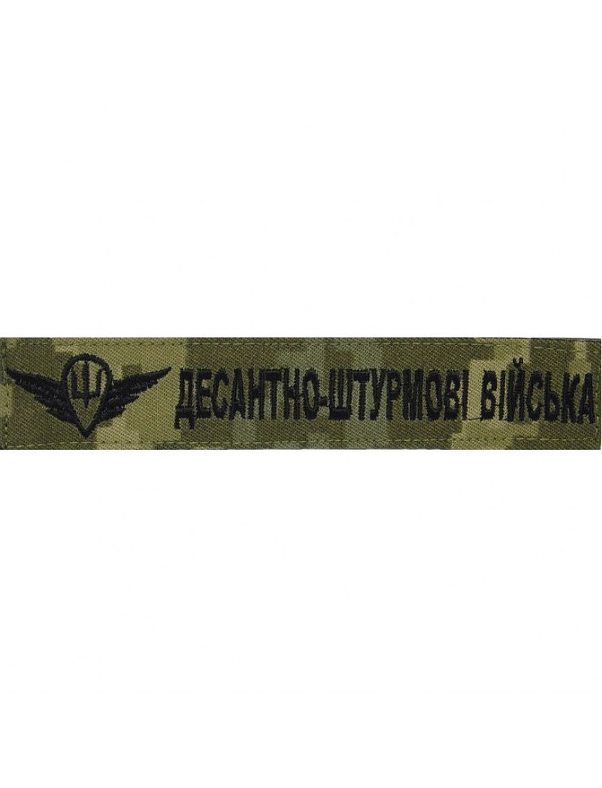Камуфляжний нагрудний знак десантно-штурмових військ із чорною ниткою. Підкреслює належність до еліт..