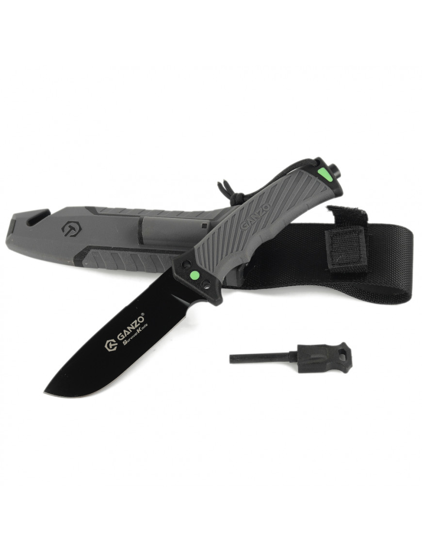 У комплект з ножем входять фірмові піхви, які мають доповнення у вигляді невеликого кресала, стропоріза і компактної пластини, що виконує функцію Точила, якщо під рукою немає повноцінного точильного каменю. Модель Ganzo G8012V2-GY має отвір під темляк і продається разом з паракордом. Це синтетична мотузка з особливим плетінням, яке підвищує міцність матеріалу. Темляк можна використовувати як додатковий варіант для фіксації вироби на поясі або сумці.