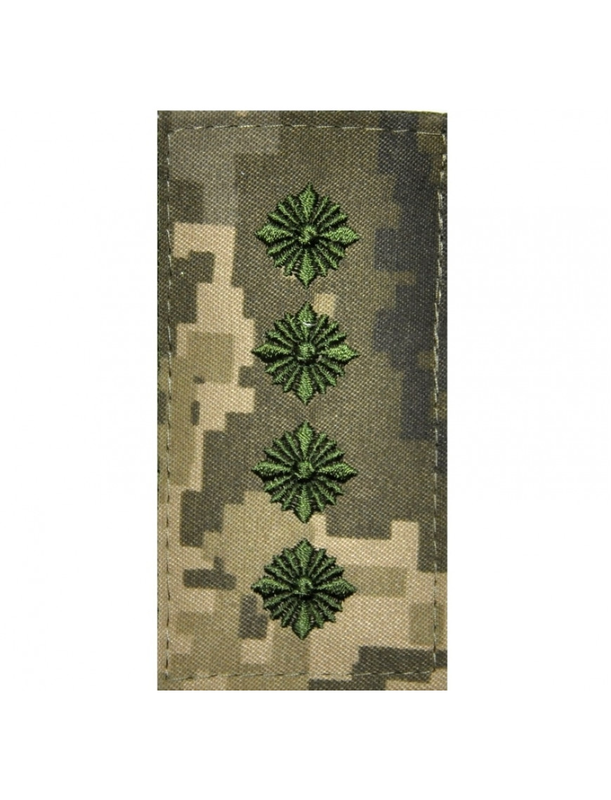 Тильна сторона виробу Velcro (текстильна застібка). Погони у формі витягнутого прямокутника розміром 5х10 см.