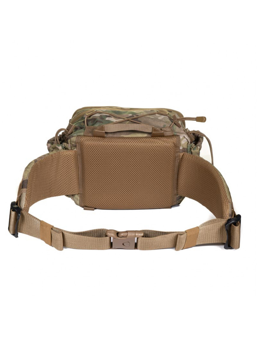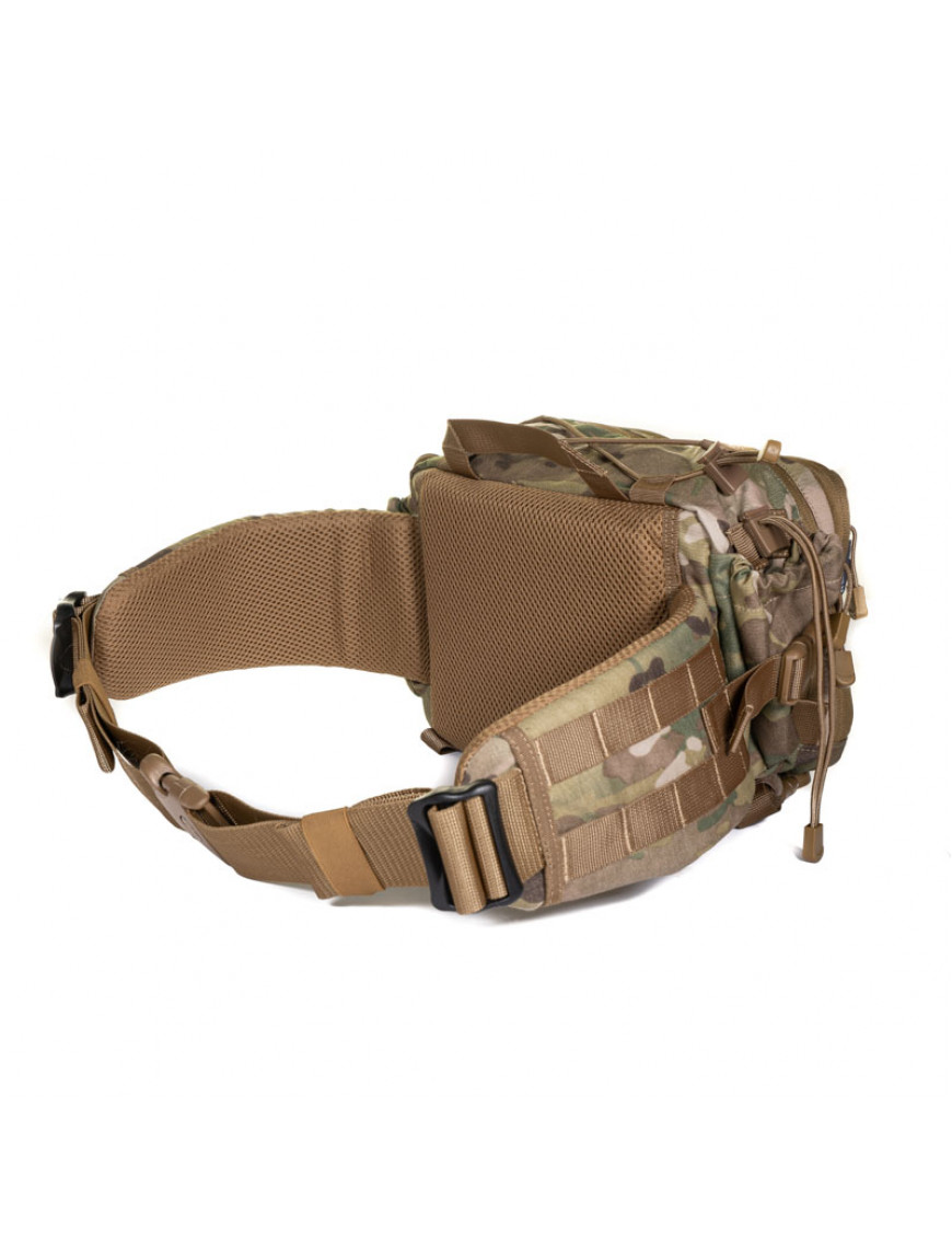 Пояс сумки виконаний в мілітарі стилі і має розташовану на собі систему MOLLE. Це дозволяє прикріпити до нього додаткові навіси чи утилітарні підсумки, тим самим збільшивши обєм поясного рюкзака ( навіть вдвічі).